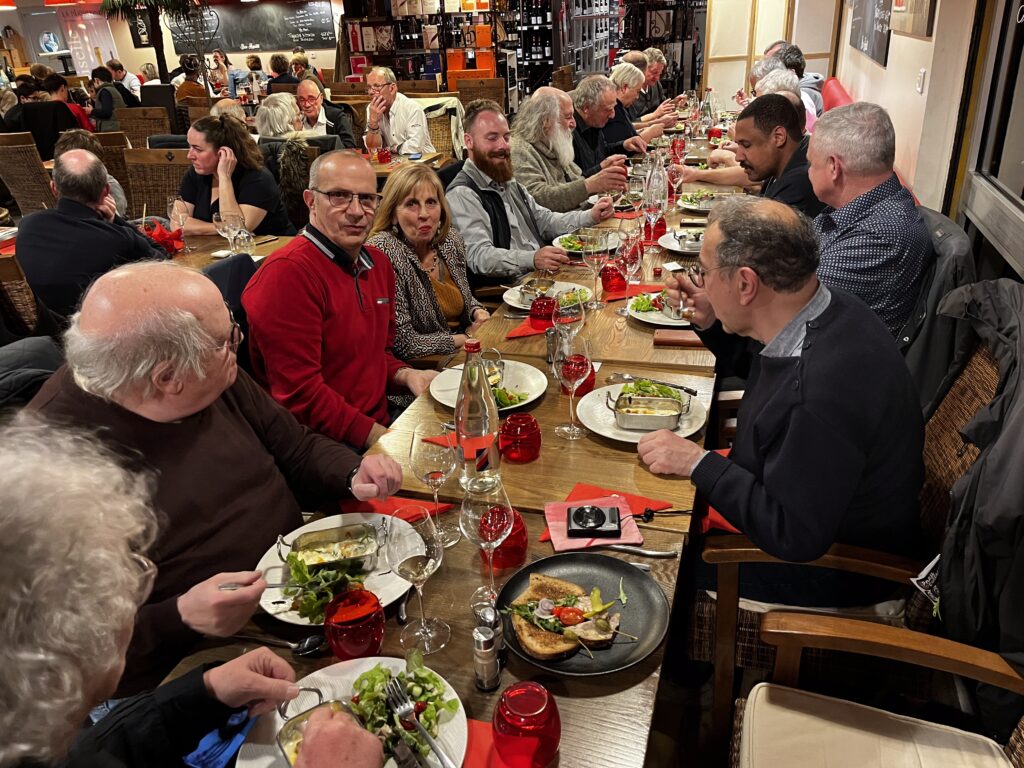 Le Salon de Reims, ce n’est pas seulement une célébration de l’automobile ancienne, c’est aussi un moment de convivialité autour de bons mets. Comme l’an passé, nous avons partagé un délicieux pâté-croûte (et non « en croute », nous ne sommes pas à Lyon ici) à la volaille et au poivre vert – un régal auquel les absents auraient tort de renoncer l’an prochain ! Et, fidèle à la tradition, nous nous sommes retrouvés au restaurant Les Délices des Papilles, à quelques pas du parc des expositions. Cette année, nous étions dix-neuf à échanger anecdotes et souvenirs autour d’un excellent repas.